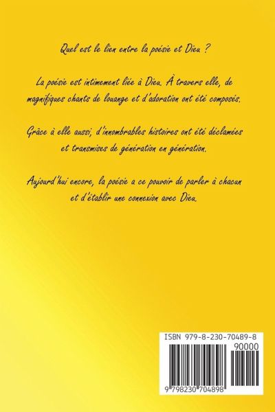 Quel est le lien entre la poésie et Dieu ? La poésie est intimement liée à Dieu. À travers elle, de magnifiques chants de louange et d'adoration ont été composés. Grâce à elle aussi, d'innombrables histoires ont été déclamées et transmises de génération en génération. Aujourd'hui encore, la poésie a ce pouvoir de parler à chacun et d'établir une connexion avec Dieu.