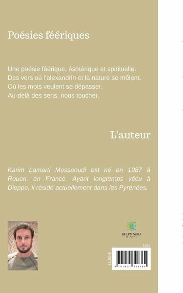 Une poésie féérique, ésotérique et spirituelle. Des vers où l¿alexandrin et la nature se mêlent. Où les mots veulent se dépasser. Au-delà des sens, nous toucher.