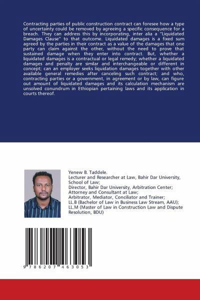 Contracting parties of public construction contract can foresee how a type of uncertainty could be removed by agreeing a specific consequence for a breach. They can address this by incorporating, inter alia a "Liquidated Damages Clause" to that outcome. Liquidated damages is a fixed sum agreed by the parties in their contract as a value of the damages that one party can claim against the other, without the need to prove that sustained damage when they enter into contract. But, whether a liquidated damages is a contractual or legal remedy; whether a liquidated damages and penalty are similar and interchangeable or different in concept; can an employer seeks liquidation damages together with other available general remedies after canceling such contract; and who, contracting parties or a government, in agreement or by law, can figure out amount of liquidated damages and its calculation mechanism are unsolved conundrum in Ethiopian pertaining laws and its application in courts thereof.