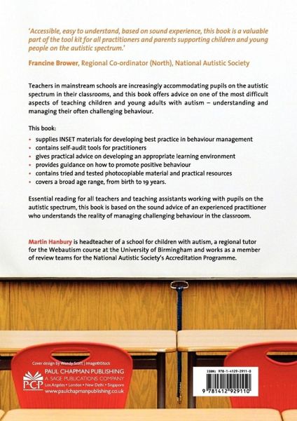 Teachers in mainstream schools are increasingly accommodating pupils on the autistic spectrum in their classrooms, and this books offers advice on one of the most difficult aspects of teaching children and young adults with autism - understanding and managing their often challenging behaviour. This book: o explores issues surrounding behaviour support o supplies INSET materials for developing practice in behaviour management o contains self-audit tools for practitioners o gives practical advice on developing an appropriate learning environment o provides guidance on how to promote positive behaviour o contains tried and tested photocopiable material and practical resources. Essential reading for all teachers and teaching assistants working with pupils on the autistic spectrum, this book is based on the sound advice of an experienced practitioner who understands the reality of managing challenging behaviour in the classroom. Martin Hanbury is head of a special school, a regional tutor on the Webautism course at the University of Birmingham and works for the National Autistic Society.