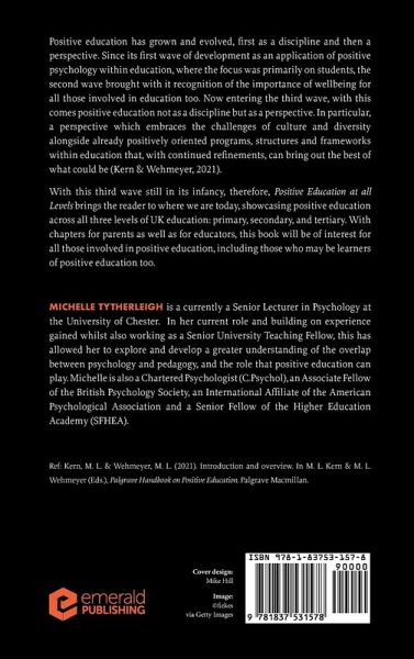 Michelle Tytherleigh is a currently a Senior Lecturer in Psychology at the University of Chester. In her current role and building on experience gained whilst also working as a Senior University Teaching Fellow, this has allowed her to explore and develop a greater understanding of the overlap between psychology and pedagogy, and the role that positive education can play. Michelle is also a Chartered Psychologist (C.Psychol), an Associate Fellow of the British Psychology Society, an International Affiliate of the American Psychological Association and a Senior Fellow of the Higher Education Academy (SFHEA).
