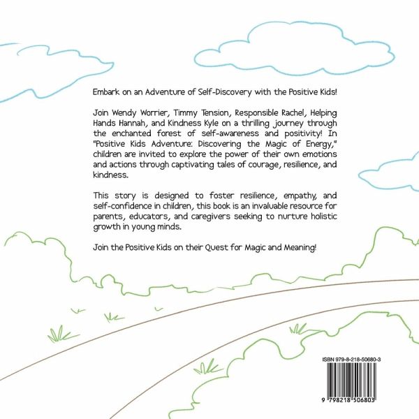 Positive Kids Adventure: Discovering the Magic of Energy Join Wendy, Timmy, Rachel, Hannah, and Kyle, the Positive Kids, on an exciting adventure through the mysterious Energy Forest! This delightful story uses fantastical elements to introduce children to the concept of emotional awareness and self-regulation. Through their journey, the Positive Kids encounter challenges that represent different energy levels, including worry, tension, responsibility, helpfulness, and kindness. As they navigate each level, they learn valuable strategies to manage their emotions and cultivate positive energy. What's Inside:Engaging Story: A captivating adventure filled with relatable characters and a magical setting. Interactive Reflections: Thought-provoking questions after each level encourage children to reflect on their own emotions and actions. Positive Reinforcement: Empowers children to embrace positive energy and create a kinder world. Teaches Valuable Skills: Introduces concepts of emotional awareness, self-regulation, and teamwork. Perfect for:Children ages 5-8 Parents, educators, and counselors Anyone looking for a fun and engaging way to teach children about emotional intelligence Join the Positive Kids on their adventure and discover the magic of your own energy!