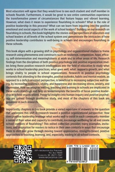 Most educators will agree that they would love to see each student and staff member in schools flourish. Furthermore, it would be great to see entire communities experience the transformative power of circumstances that feature happy and vibrant learning. However, what does it mean to experience flourishing in schools? What is the role of positive leadership in this process? What can we learn from inquiring into the positive emotional and social aspects of the work of school leaders? Building on our research on flourishing in schools, this book highlights the stories and perspectives of educators and school leaders at all levels of the school system and demonstrate the intricacies of how positive leadership contributes to well-being in schools and encourages flourishing in these schools. This book aligns with a growing shift in psychology and organizational studies to frame research using phenomena and constructs such as resilience, compassion, hope, efficacy, self-determination and meaningfulness at work and in other areas of life. Research findings from the disciplines of both positive psychology and positive organization studies bring these positive research intelligences into the field of education to study what works in school leadership practices, what goes well, what supports growth, and what brings vitality to people in school organizations. Research in positive psychology contends that attending to the strengths, positive outlooks, habits and mental models, as opposed to a deficit-oriented perspective, is beneficial to increasing subjective well-being, by increasing resilience, vitality, and happiness and decreasing stress, anxiety, and depression. How we imagine leading, teaching and learning in schools are implicated in these understandings and help us to contemplate the benefits of focus positive leadership in school organizations. Powerful insights into human inquiry and positive psychology are gained through qualitative study and most of the chapters of this book are grounded in such research. Importantly, chapters in this book provide a varied repertoire of answers to the question that underpins this shift in research toward a positive organizational perspective: How does positive leadership leverage what works well to instill in each community member a sense of their value and capacity to contribute, encourage wellbeing for all and create school contexts of flourishing? This edited collection provides many examples, invitations, and inspiration for readers to notice in their own contexts in ways that encourage them to shift and grow through moving toward appreciative, strengths-based, positive approaches to teaching, learning, and, especially, leading in all school contexts.