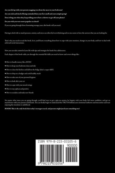 Are you fed up with your parents nagging you about the mess in your bedroom? Are you sick and tired of being reminded that your feet smell and your armpits pong? Does it bug you when they keep telling you to have a shower or get off your phone? Do you wish you were more popular at school? Do you often feel like you just want to scream and let off steam? If you are going through those frustrating teenage years, this book is all you need. Having to deal with so much pressure, anxiety, and stress can often feel overwhelming and no one seems to have the answers that you are looking for. That's why you need to read this book. In it, you'll learn everything about how to cope with your emotions, changes in your body, and how to deal with awkward social interactions. Now you can take control of your life with tips and strategies for hassle-free adolescence. Each chapter of the book walks you through the essential life skills you need to know and covers things like: ¿ How to handle money like a BOSS! ¿ How to keep your bedroom clean and tidy ¿ How to clean the kitchen and defrost the fridge (that's a super skill!) ¿ How to shop on a budget and cook healthy meals ¿ How to take care of your personal hygiene ¿ How to look after your car ¿ How to cope with your mood swings ¿ How to stay upbeat and positive ¿ How to socialize and make new friends No matter what issues you are going through, you'll find ways to get a grip on anxiety, be happier with your body, feel more confident, and get on much better with your parents and friends. You can finally begin to understand the TRUTH behind your emotional outbursts and insecurities and start enjoying the transition to adulthood. BOOM! This is the only book that today's teenagers need, and parents might just learn something too!