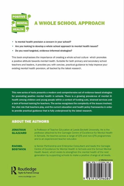 Targeted strategies for developing a whole school approach to mental health provision, emphasising the importance of creating a whole school culture which promotes a positive attitude towards mental health.Hinweis: Dieser Artikel kann nur an eine deutsche Lieferadresse ausgeliefert werden.