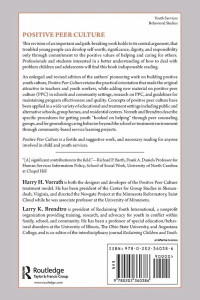 An enlarged and revised edition of the authors' pioneering work on building positive youth culture, Positive Peer Culture retains the practical orientation that made the original attractive to teachers and youth workers, while adding new material on positive peer culture (PPC) in schools and community settings, research on PPC, and guidelines for maintaining program effectiveness and quality. Concepts of positive peer culture have been applied in a wide variety of educational and treatment settings including public and alternative schools, group homes, and residential centers. Vorrath and Brendtro describe specific procedures for getting youth "hooked on helping" through peer counseling groups, and for generalizing caring behavior beyond the school or treatment environment through community-based service learning projects.