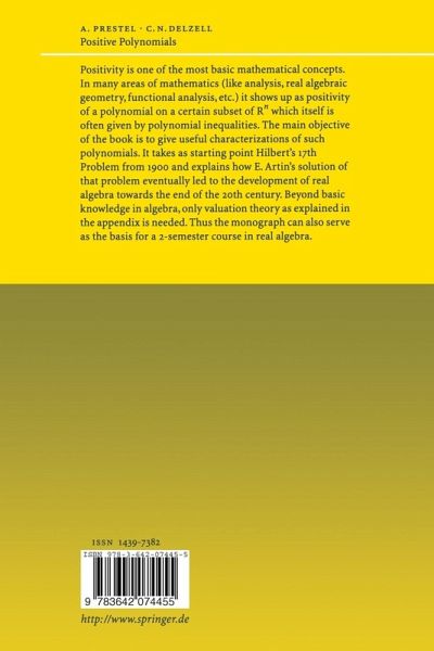 "This is a nicely written introduction to 'reality' and 'positivity' in rings, and besides students and researchers it can also be interesting for anyone who would like to learn more on positivity and orderings." -- Vilmos Totik, Acta Scientiarum Mathematicarum, Vol. 68, 2002