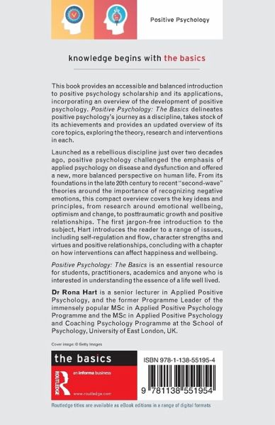 This book provides an accessible and balanced introduction to positive psychology scholarship and its applications, incorporating an overview of the development of positive psychology. Positive Psychology: The Basics delineates positive psychology's journey as a discipline, takes stock of its achievements and provides an updated overview of its core topics, exploring the theory, research and interventions in each.