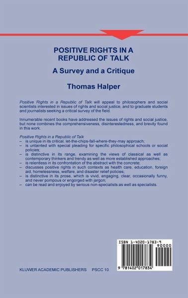 Positive Rights in a Republic of Talk will appeal to philosophers and social scientists interested in issues of rights and social justice, and to graduate students and journalists seeking a critical survey of the field.