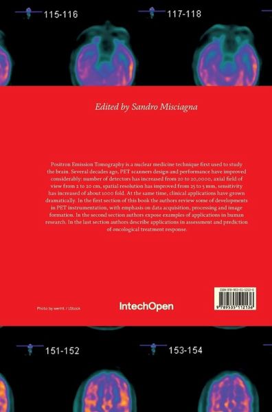 Positron Emission Tomography is a nuclear medicine technique first used to study the brain. Several decades ago, PET scanners design and performance have improved considerably: number of detectors has increased from 20 to 20,0000, axial field of view from 2 to 20 cm, spatial resolution has improved from 25 to 5 mm, sensitivity has increased of about 1000 fold. At the same time, clinical applications have grown dramatically. In the first section of this book the authors review some of developments in PET instrumentation, with emphasis on data acquisition, processing and image formation. In the second section authors expose examples of applications in human research. In the last section authors describe applications in assessment and prediction of oncological treatment response.