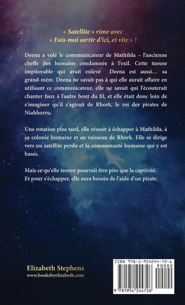 Satellite rime avec Fais-moi sortir d'ici, et vite ! Deena a volé le communicateur de Mathilda - l'ancienne cheffe des humains condamnée à l'exil. Cette tueuse impitoyable qui avait enlevé Deena est aussi... sa grand-mère. Deena ne savait pas à qui elle aurait affaire en utilisant ce communicateur, elle ne savait qui l'écouterait chanter faux à l'autre bout du fil, et elle était donc loin de s'imaginer qu'il s'agirait de Rhork, le roi des pirates Niahhorrus. Une rotation plus tard, elle réussit à échapper à Mathilda, à sa colonie humaine et au vaisseau de Rhork. Elle se dirige vers un satellite perdu et la communauté humaine qui y est basée. Mais ce qu'elle trouve pourrait être pire que la captivité. Et pour s'échapper, elle aura besoin de l'aide d'un pirate. _____ Possédée par un Pirate de Kor est le cinquième livre de la Passion Xiveri, une romance extraterrestre de science-fiction. Tous les livres font la part belle à la mixité et les mondes présentés sont tous différents. En outre, les intrigues amoureuses, passionnées, destinées à un public adulte, ont toutes une fin heureuse. #PassionXiveri #ElizabethStephens #romanceextraterrestre #livrefantasy