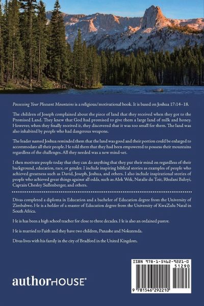 Possessing Your Pleasant Mountains is a religious/motivational book. It is based on Joshua 17:14-18. The children of Joseph complained about the piece of land that they received when they got to the Promised Land. They knew that God had promised to give them a large land of milk and honey. However, when they finally received it, they discovered that it was too small for them. The land was also inhabited by people who had dangerous weapons. The leader named Joshua reminded them that the land was good and their portion could be enlarged to accommodate all their people. He told them that they had been empowered to possess their mountains regardless of the challenges. All they needed was a new mind-set. I then motivate people today that they can do anything that they put their mind on regardless of their background, education, race, or gender. I include inspiring biblical stories as examples of people who achieved greatness such as David, Joseph, Joshua, and others. I also include inspirational stories of people who achieved great things against all odds, such as Alek Wek, Natalie du Toit, Rhulani Baloyi, Captain Chesley Sullenberger, and others.