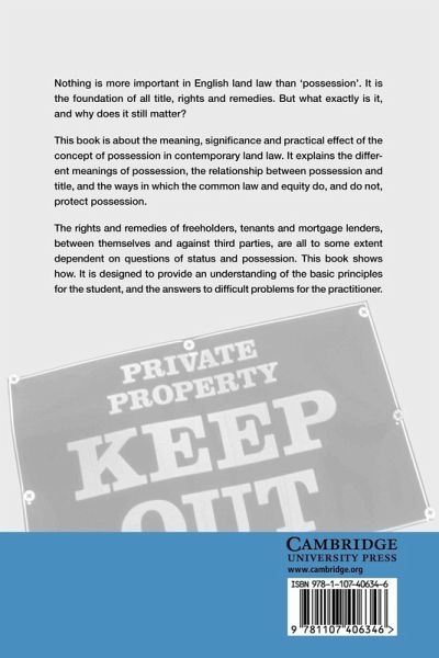 Nothing is more important in English land law than 'possession'. It is the foundation of all title, rights and remedies. But what exactly is it, and why does it still matter? This book, first published in 2006, is about the meaning, significance and practical effect of the concept of possession in contemporary land law. It explains the different meanings of possession, the relationship between possession and title, and the ways in which the common law and equity do, and do not, protect possession. The rights and remedies of freeholders, tenants and mortgage lenders, between themselves and against third parties, are all to some extent dependent on questions of status and possession. This book shows how. It is designed to provide an understanding of the basic principles for the student, and answers to difficult, real problems for the practitioner.