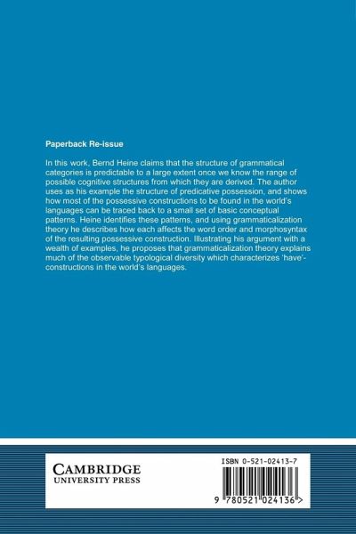 In this new work, Bernd Heine claims that the structure of grammatical categories is predictable to a large extent once we know the range of possible cognitive structures from which they are derived. The author uses as his example the structure of predicative possession, and shows how most of the possessive constructions to be found in the world's languages can be traced back to a small set of basic conceptual patterns. Heine identifies these patterns, and using grammaticalization theory he describes how each affects the word order and morphosyntax of the resulting possessive construction. He argues that grammaticalization theory explains much of the observable typological diversity which characterizes 'have'-constructions in the world's languages. Illustrated by a wealth of examples, this is an original and important statement from a leading linguist.