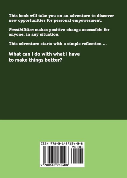 The words in this book will take you on an adventure. An adventure designed to facilitate new opportunities for personal empowerment. An adventure designed to make positive change accessible for anyone, in any situation. These words have been written to help us overcome barriers, set us free from limitations and empower us to be able to make a difference. These words have been written to create opportunities. Where they take you will depend on how you engage with them. And they all start with a simple reflection...What can I do with what I have to make things better?