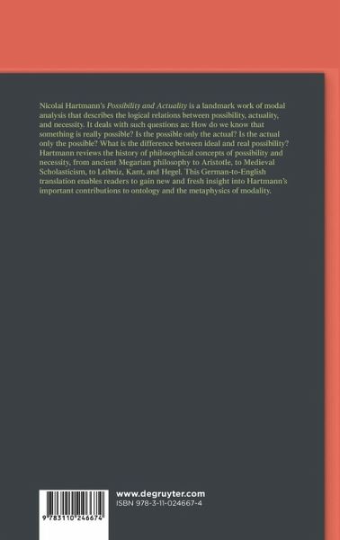 Nicolai Hartmann's Possibility and Actuality is the second volume of a four-part investigation of ontology. It deals with such questions as: How do we know that something is really possible? Is the possible only the actual? Is the actual only the possible? What is the difference between ideal and real possibility?