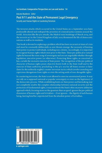 Contributors.- About the Contributors.- Introduction: Security, Criminal Justice and Human Rights in Countering Terrorism in the Post 9/11 Era; Aniceto Masferrer.- Part I State Power and Legal Responses from an Historical Perspective.- Chapter 1 The State Power and the Limits of the Principle of Sovereignty: An Historical Approach: Aniceto Masferrer and Juan A. Obarrio.- Chapter 2 Legal Concepts of Terrorism as Political Crime and International Criminal Law in 18th and 19th Century Europe; Karl Härter.- Part II Defining Terrorism.- Chapter 3 Civilising the Exception: Universally Defining Terrorism; by Ben Saul.- Chapter 4 Terrorism: Limits between Crime and War. The Fallacy of the Slogan 'War on Terror'; Mariona Llobet.- Part III Keeping Counter-Terrorism Within The Criminal Law Justice? .- Chapter 5 The Impact of Contemporary Security Agendas against Terrorism on the Substantive Criminal Law; Clive Walker.- Chapter 6 The War on Terror and Crusading Judges: Re-establishing the Primacy of the Criminal Justice System; Francesca M. Galli.- Chapter 7 Secret Evidence and its Alternatives; Kent Roach.- Chapter 8 Evolution of British Law on Terrorism: From Ulster to Global Terrorism (1970-2010); Leandro Martínez-Peñas & Manuela Fernández-Rodríguez.- Chapter 9 Australian Responses to 9/11: New World Legal Hybrids? Simon Bronitt & Susan Donkin.- Chapter 10 Democratic States' Response to Terrorism: A Comparative Reflection on the Perceived Role of the Judiciary in the Protection of Human Rights and Civil Liberties Marinella Marmo.- Chapter 11 The U.S. Response to Cuban and Puerto Rican Right-Wing Terrorism in the pre and post 9/11 Era José M. Atiles-Osoria.- Part IV Counter-Terrorism from an International-Law Perspective.- Chapter 12 Permanent Legal Emergencies and the Derogation Clause in International Human Rights Treaties: A Contradiction?; Christopher Michaelsen.- Chapter 13 National Self-Defence in theAge of Terrorism: Immediacy and State Attribution; Mark Kielsgard.