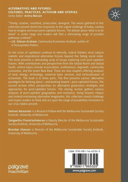 As the crises of capitalism continue to intensify, radical thinkers must conjure realistic and inspirational alternative futures beyond this failing social order. This book presents a stimulating array of essays exploring such post-capitalist futures. With contributions and perspectives from the Global North and Global South, central topics include ecosocialism, ecofeminism, degrowth, community economies, and the Green New Deal. There are also chapters offering analyses of land, energy, technology, universal basic services, and (re)localisation of economies. The book is in three parts. The first presents various alternative paradigms for thinking about - and working toward - post-capitalist futures. The second section offers perspectives on alternative governance strategies and approaches for post-capitalist futures. The closing section gathers various analyses of post-capitalist geographies and resistance. Going beyond critique and instead envisioning alternative imaginaries, this collection should challenge and inspire readers to think and act upon the range of possibilities immanent in our crisis-ridden present.