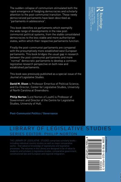 The sudden collapse of communism stimulated both the rapid emergence of fledgling democracies and scholarly attention to the post-communist transition. These newly democratized parliaments have been described as "parliaments in adolescence". This book identifies six parliaments which exemplify the wide range of developments in the new post-communist political systems, from the stable consolidated democracies to the less stable and more authoritarian states, within which their respective parliaments function. Finally the post-communist parliaments are compared with the presumptively more established west European parliaments. This book bridges the usual gap in research between the post-communist parliaments and more "normal" democratic parliaments to develop a common legislative research perspective on both new and established parliaments. This book was previously published as a special issue of the Journal of Legislative Studies.