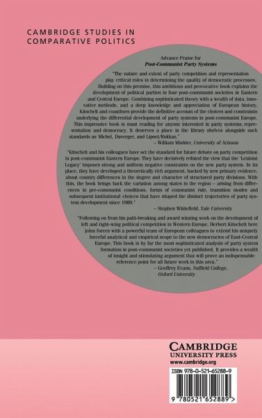 Acknowledgments; Introduction Democracy and Party Competition; Part I. Theory, Party Systems and the Procedural Quality of Post-Communist Democracy: 1. Historical legacies and strategies of democratization: pathways toward post-communist polities; 2. The quality of post-communist democracy: patterns of party competition, interest representation and governance; Part II. Setting and Research Strategy: 3. From communist rule to democracy: four central and East European countries; 4. Empirical research strategy; Part III. The Structuring of Party Competition: 5. Programmatic citizen-elite linkage strategies across post-communist polities; 6. Linkage strategies within party systems: diversity among parties; Part IV. Political Alignments and Dimensions of Competition: 7. Political divides and alignments: the politicians; 8. Electoral constituency alignments: emerging political cleavages?; Part V. Political Representation and the Quality of Democratic Governance: 9. Political representation; 10. The governability of post-communist democracies: collation politics between passions and policy interests; Part VI. Conclusion: 11. The diversity of post-communist democratic governance; Appendices; Bibliography.