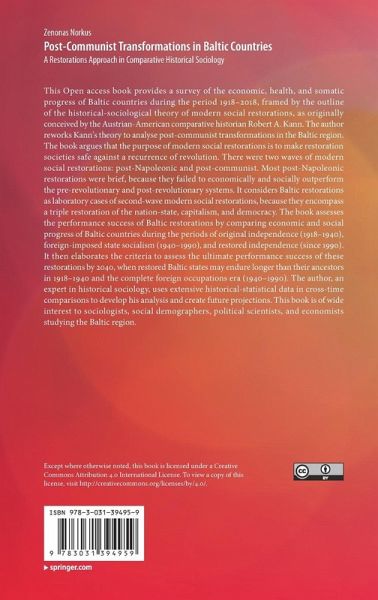 This Open access book provides a survey of the economic, health, and somatic progress of Baltic countries during the period 1918-2018, framed by the outline of the historical-sociological theory of modern social restorations, as originally conceived by the Austrian-American comparative historian Robert A. Kann. The author reworks Kann's theory to analyse post-communist transformations in the Baltic region. The book argues that the purpose of modern social restorations is to make restoration societies safe against a recurrence of revolution. There were two waves of modern social restorations: post-Napoleonic and post-communist. Most post-Napoleonic restorations were brief, because they failed to economically and socially outperform the pre-revolutionary and post-revolutionary systems. It considers Baltic restorations as laboratory cases of second-wave modern social restorations, because they encompass a triple restoration of the nation-state, capitalism, and democracy. The bookassesses the performance success of Baltic restorations by comparing economic and social progress of Baltic countries during the periods of original independence (1918-1940), foreign-imposed state socialism (1940-1990), and restored independence (since 1990). It then elaborates the criteria to assess the ultimate performance success of these restorations by 2040, when restored Baltic states may endure longer than their ancestors in 1918-1940 and the complete foreign occupations era (1940-1990). The author, an expert in historical sociology, uses extensive historical-statistical data in cross-time comparisons to develop his analysis and create future projections. This book is of wide interest to sociologists, social demographers, political scientists, and economists studying the Baltic region.