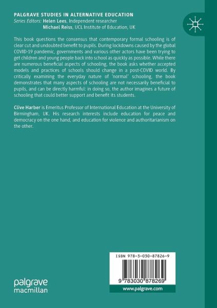 This book questions the consensus that contemporary formal schooling is of clear cut and undoubted benefit to pupils. During lockdowns caused by the global COVID-19 pandemic, governments and various other actors have been trying to get children and young people back into school as quickly as possible. While there are any numerous beneficial aspects of schooling, the book asks whether accepted models and practices of schools should change in a post-COVID world. By critically examining the everyday nature of 'normal' schooling, the book demonstrates that many aspects of schooling are not necessarily beneficial to pupils, and can be directly harmful: in doing so, the author imagines a future of schooling that could better support and benefit its students.