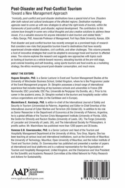 Part 1: Tourism and Geopolitics 1. Tourism as a Vehicle Toward Recovery 2. The Unsettling Rage and Fury Associated with Consuming Post-Disaster Space(s) 3. Educating Tourists at the Pre-Visit Stage Part 2: Post-Colonial, Conflict, And Disaster Destinations 4. Post-Colonial Branding and Self-Branding in a Destination Marketing Strategy Part 3: Consumption in Post-Colonial and Conflict Destination 5. Global Branding Strategy and Framework 6. Global Branding Strategy and Framework Exploring the Potential of Street Food as a Sustainable Livelihood Tourism Strategy for Developing Destinations 7. Unlocking Changes for Sport Tourism Products Using the Blakeley-Visser Model: An Application to Sporting Events in Small Islands: The Case of Martinique 8. The Future of Post-Colonial, Conflict, and Disaster Destinations: Myths and Reality 9. Food Events and Destination Image: A Corollary Note Part 4: A Commoditized World 10. The Commoditization of Security Guards in the Tourism Industry: The Case of Argentina 11. The Ethics Revolving Around Post-Disaster Consumption 12. Genocide Suffering and Global Capitalism 13. Introduction, Conclusion, and Epilogue