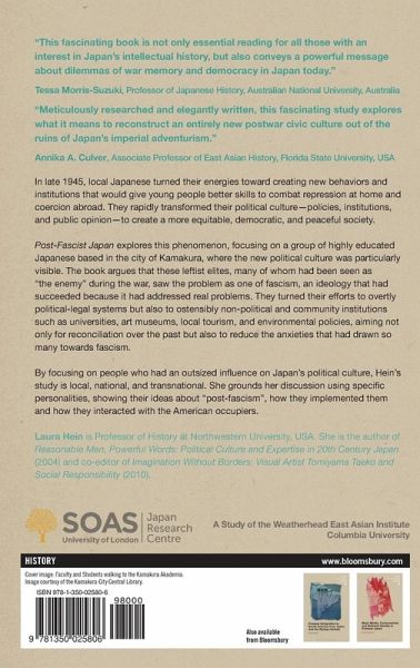 In late 1945 local Japanese turned their energies toward creating new behaviors and institutions that would give young people better skills to combat repression at home and coercion abroad. They rapidly transformed their political culture-policies, institutions, and public opinion-to create a more equitable, democratic and peaceful society. Post-Fascist Japan explores this phenomenon, focusing on a group of highly educated Japanese based in the city of Kamakura, where the new political culture was particularly visible. The book argues that these leftist elites, many of whom had been seen as 'the enemy' during the war, saw the problem as one of fascism, an ideology that had succeeded because it had addressed real problems. They turned their efforts to overtly political-legal systems but also to ostensibly non-political and community institutions such as universities, art museums, local tourism, and environmental policies, aiming not only for reconciliation over the past but also to reduce the anxieties that had drawn so many towards fascism. By focusing on people who had an outsized influence on Japan's political culture, Hein's study is local, national, and transnational. She grounds her discussion using specific personalities, showing their ideas about 'post-fascism', how they implemented them and how they interacted with the American occupiers.