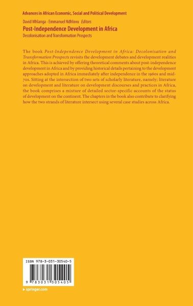 The book Post-Independence Development in Africa: Decolonisation and Transformation Prospects revisits the development debates and development realities in Africa. This is achieved by offering theoretical comments about post-independence development in Africa and by providing historical details pertaining to the development approaches adopted in Africa immediately after independence in the 1960s and mid-70s. Sitting at the intersection of two sets of scholarly literature, namely; literature on development and literature on development discourses and practices in Africa, the book comprises a mixture of detailed sector-specific accounts of the status of development on the continent. The chapters in the book also contribute to clarifying how the two strands of literature intersect using several case studies across Africa.