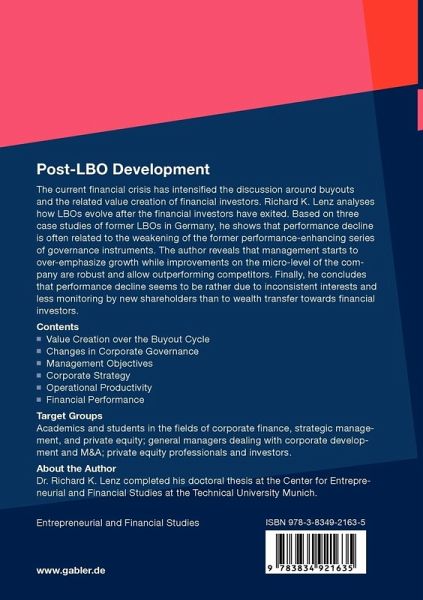 Private Equity and leveraged buyouts have become common in Europe, including in particular Germany. They are a catalyst for corporate restructuring and growth. Over time, financial investors have started to exit their investments. The development of some former LBOs raises the question whether the financial investors traded lo- term growth against short-term cash flow and expropriated value. Financial investors are further accused of reducing employment, cutting salaries, offshoring production, and leaving companies financially instable. Researchers have questioned the sustainability of performance improvement and tested changes in performance indicators. The findings confirm that the financial performance of former LBOs declines. The decline occurs with a time lag, but research fails to explain in detail its determinants of this decline. In particular, the decline seems to be caused by increase strategy diversification, the recurrence of inefficiencies and reduced management focus on efficiency. These observations are limited to companies that exit through a public offering, not through a trade sale. This study seeks to enhance completeness and precision of research into the post-exit period. Given the secrecy of the industry, no empirical data has been gathered that in detail analyses how the way the LBOs are supervised and managed changes at the exit. Research on the subsequent changes in strategy and operations is sparse and limited to those companies pursuing a public offering. A greater understanding of the source of performance development requires further plowing through major corporate activities.