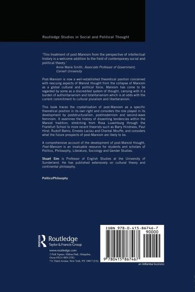 This book traces the crystallisation of post-Marxism as a specific theoretical position in its own right and considers the role played in its development by post-structuralism, postmodernism and second-wave feminism. It examines the history of dissenting tendencies within the Marxist tradition and considers what the future prospects of post-Marxism are likely to be.