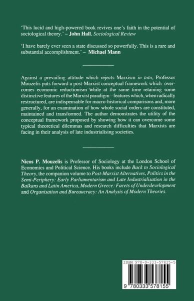 Mouzelis puts forward a post-Marxist conceptual framework which overcomes economic reductionism while retaining some distinctive features of the Marxist paradigm which are seen to be indispensable for an examination of how whole social orders are constituted, maintained and transformed.