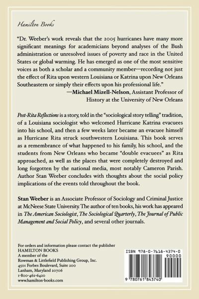 This Louisiana sociologist welcomed Hurricane Katrina evacuees into his school, and then a few weeks later became an evacuee himself as Hurricane Rita struck Louisiana. This book serves as a remembrance of what happened to the people as well as the places that were completely destroyed and long forgotten by the national media.