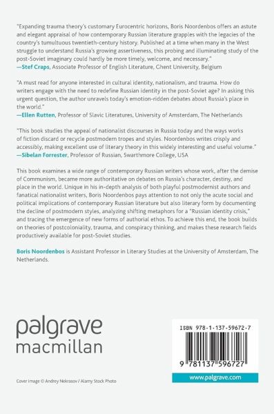 This book examines a wide range of contemporary Russian writers whose work, after the demise of Communism, became more authoritative in debates on Russia's character, destiny, and place in the world. Unique in his in-depth analysis of both playful postmodernist authors and fanatical nationalist writers, Noordenbos pays attention to not only the acute social and political implications of contemporary Russian literature but also literary form by documenting the decline of postmodern styles, analyzing shifting metaphors for a "Russian identity crisis," and tracing the emergence of new forms of authorial ethos. To achieve this end, the book builds on theories of postcoloniality, trauma, and conspiracy thinking, and makes these research fields productively available for post-Soviet studies.
