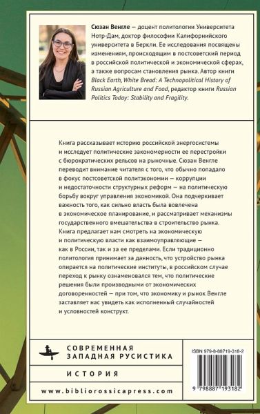 ENG Post-Soviet Power tells the story of the Russian electricity system and examines the politics of its transformation from a ministry to a market. Susanne A. Wengle shifts our focus away from what has been at the center of post-Soviet political economy - corruption and the lack of structural reforms - to draw attention to political struggles to establish a state with the ability to govern the economy. She highlights the importance of hands-on economic planning by authorities - post-Soviet developmentalism - and details the market mechanisms that have been created. This book argues that these observations urge us to think of economies and political authority as mutually constitutive, in Russia and beyond. Whereas political science often thinks of market arrangements resulting from political institutions, Russia's marketization demonstrates that political status is also produced by the market arrangements that actors create. Taking this reflexivity seriously suggests a view of economies and markets as constructed and contingent entities. RUS Книга рассказывает историю российской энергосистемы и исследует политические закономерности ее перестройки с бюрократических рельсов на рыночные. Сюзан Венгле переводит внимание читателя с того, что обычно попадало в фокус постсоветской политэкономии - коррупции и недостаточности структурных реформ —
