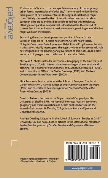 The term 'edge city' describes the rapid growth of urban centres at the edge of established cities. Widely discussed in the US, very little has been written about European edge cities. This book gives a comparative analysis of examples in Greece, Spain, Paris, Finland and the UK, with a theoretical analysis of edge cities and post-suburban Europe.