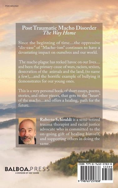 Post Traumatic Macho Disorder Since the beginning of time....the oppressive "dis-ease" of "Macho-ism" continues to have a devastating impact on ourselves and our world. The macho plague has reeked havoc on our lives.... and been the primary cause of wars, racism, sexism, desecration of the animals and the land, (to name a few),...and the horrific example of bullying it demonstrates for our young ones. This is a very personal book, of short essays, poems, stories, and other pieces, that gets to the "heart" of the macho....and offers a healing, path for the future.