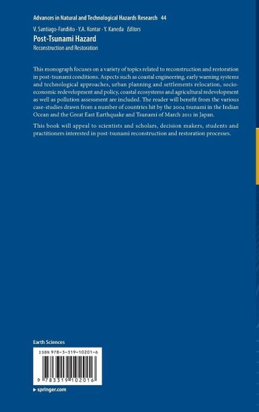 This monograph focuses on a variety of topics related to reconstruction and restoration in post-tsunami conditions. Aspects such as coastal engineering, early warning systems and technological approaches, urban planning and settlements relocation, socio-economic redevelopment and policy, coastal ecosystems and agricultural redevelopment as well as pollution assessment are included. The reader will benefit from the various case-studies drawn from a number of countries hit by the 2004 tsunami in the Indian Ocean and the Great East Earthquake and Tsunami of March 2011 in Japan.