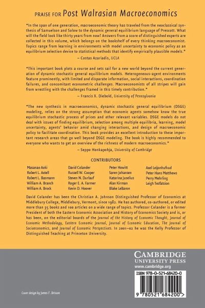 Part I. Where We Are in Macro and How We Got There: 1. Stories from the haunted vault: notes on a century of macroeconomics 2. Post Walrasian macroeconomics: some historic links 3. The DSGE model and the post Walrasian alternative in historical perspective 4. Who is post Walrasian man? Part II. Edging Away from the DSGE Model: 5. Social interactions and macroeconomics 6. Macroeconomics and model uncertainty 7. Restricted perceptions equilibria and learning in macroeconomics 8. Not more so: some concepts outside the DSGE framework Part III. Leaping Away from the DSGE Model: 9. Agent-based computational modeling and macroeconomics 10. Multi-agent systems macro: a prospectus 11. Agent-based financial markets: matching stylized facts with style Part IV. Doing More Good than Harm: Roles of Business and Government in Critical Infrastructure Protection: 12. Characteristics of resilient systems and organizations 13. Networks and interdependencies 14. Public - private risk-sharing: the case of terrorism risk coverage 15. Learning from experience: drawing correct analogies? Letting the data guide theory 16. The past as the future: the Marshallian approach to post Walrasian macro 17. Old world econometrics and New World theory 18. Four entrenched notions post Walrasians should avoid 19. Confronting the economic model with the data 20. Extracting information from the data: a European view on empirical macro Part V. Policy Implications: 21. Economic policy in the presence of coordination problems 22. Monetary policy and the limitations of economic knowledge.
