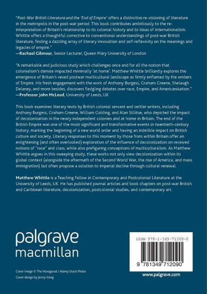 This book examines literary texts by British colonial servant and settler writers, including Anthony Burgess, Graham Greene, William Golding, and Alan Sillitoe, who depicted the impact of decolonization in the newly independent colonies and at home in Britain. The end of the British Empire was one of the most significant and transformative events in twentieth-century history, marking the beginning of a new world order and having an indelible impact on British culture and society. Literary responses to this moment by those from within Britain offer an enlightening (and often overlooked) exploration of the influence of decolonization on received notions of "race" and class, while also prefiguring conceptions of multiculturalism. As Matthew Whittle argues in this sweeping study, these works not only view decolonization within its global context (alongside the aftermath of the Second World War, the rise of America, and mass immigration) but often propose a solution to imperial decline through cultural renewal.