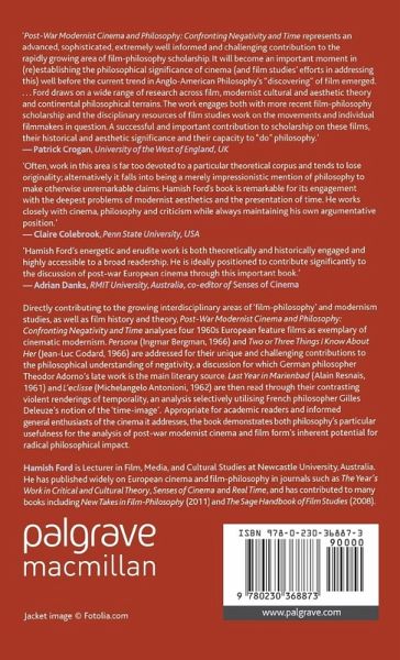 'Ford draws on a wide range of research across film, modernist cultural and aesthetic theory and continental philosophical terrains. The work engages both with more recent film-philosophy scholarship and the disciplinary resources of film studies work on the movements and individual filmmakers in question. A successful and important contribution to scholarship on these films, their historical and aesthetic significance and their capacity to 'do' philosophy.' - Patrick Crogan, University of the West of England, UK