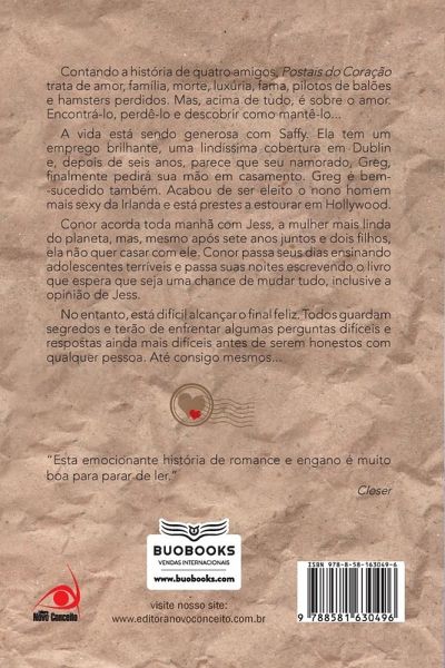 Saffy tem um trabalho incrível em uma agência de propaganda em Dublin. Ela tem sua difícil mãe a uma distância segura. E ela acredita que seu namorado ator Greg - o próximo Colin Farrell - finalmente irá pedi-la em casamento. Conor admira a linda Jess. Mas depois de sete anos e gêmeos, ela ainda não se casará com ele. Ele passa os dias ensinando adolescentes terríveis e as noites escrevendo o livro que espera que mude tudo - inclusive a mente dela.Mas está difícil de alcançar finais felizes...