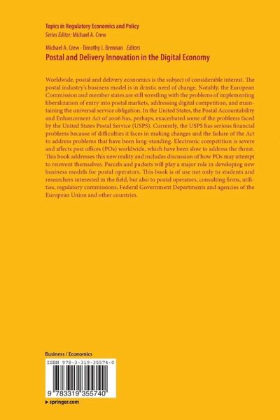 Worldwide, postal and delivery economics is the subject of considerable interest. The postal industry's business model is in drastic need of change. Notably, the European Commission and member states are still wrestling with the problems of implementing liberalization of entry into postal markets, addressing digital competition, and maintaining the universal service obligation. In the United States, the Postal Accountability and Enhancement Act of 2006 has, perhaps, exacerbated some of the problems faced by the United States Postal Service (USPS). Currently, the USPS has serious financial problems because of difficulties it faces in making changes and the failure of the Act to address problems that have been long-standing. Electronic competition is severe and affects post offices (POs) worldwide, which have been slow to address the threat. This book addresses this new reality and includes discussion of how POs may attempt to reinvent themselves. Parcels and packets will play a major role in developing new business models for postal operators. This book is of use not only to students and researchers interested in the field, but also to postal operators, consulting firms, utilities, regulatory commissions, Federal Government Departments and agencies of the European Union and other countries.