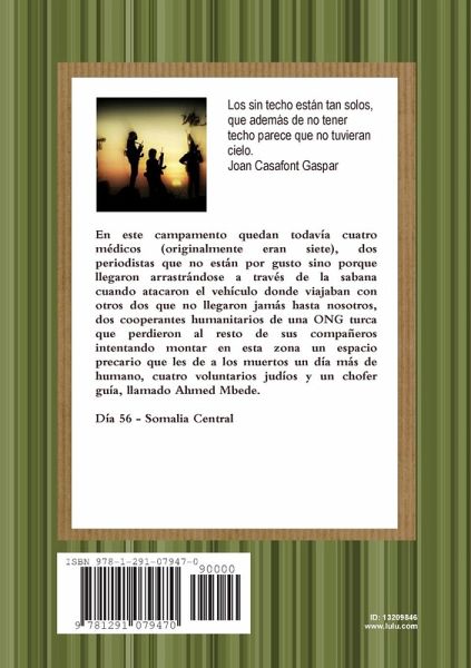 Durante la gran hambruna del 2011 en Somalia, un grupo de voluntarios prestan servicio en un rudimentario puesto sanitario montado por una ONG turca, para recibir a los refugiados de Somalia Central. La novela relata los dos meses durante los cuales los cooperantes, los Médicos sin Fronteras y los voluntarios de defensa enfrentan en condiciones de extrema precariedad la guerra civil y el salvataje de los refugiados hasta que se produzca finalmente el traslado de los mismos al campamento IFO 3.