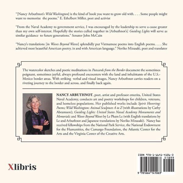 The watercolor sketches and poetic meditations in Postcards from the Border document the sometimes poignant, sometimes joyful, always profound encounters with the land and its inhabitants that author and artist Nancy Arbuthnot experienced on her recent visit to the U.S.-Mexico border. With striking verbal and visual images, she carries readers on a riveting journey to the border and across, and finally back again.