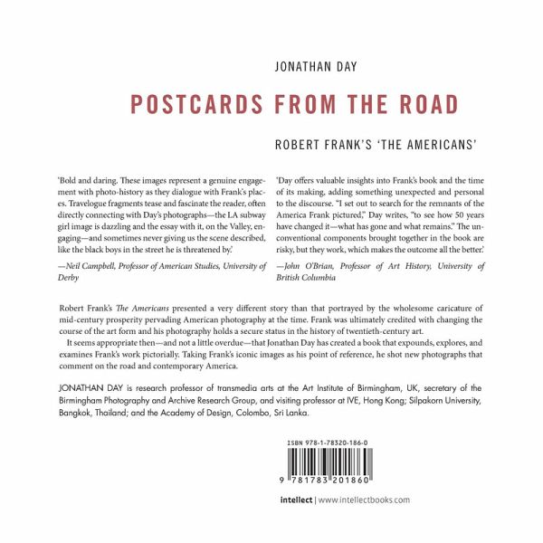 Jonathan Day's book expounds, explores and examines Robert Frank's work pictorially. Frank's candid images of men and women from all classes and walks of life is credited with changing the course of the art form. Day pairs images with commentary that details the aspects of the work that are visually expounded and explain in Day's images.