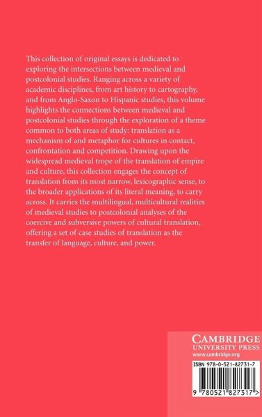 This collection of original essays is dedicated to exploring the intersections between medieval and postcolonial studies. Ranging across a variety of academic disciplines, from art history to cartography, and from Anglo-Saxon to Hispanic studies, this volume highlights the connections between medieval and postcolonial studies through the exploration of a theme common to both areas of study: translation as a mechanism of and metaphor for cultures in contact, confrontation and competition. Drawing upon the widespread medieval trope of the translation of empire and culture, this collection engages the concept of translation from its most narrow, lexicographic sense, to the broader applications of its literal meaning, to carry across. It carries the multilingual, multicultural realities of medieval studies to postcolonial analyses of the coercive and subversive powers of cultural translation, offering a set of case studies of translation as the transfer of language, culture and power.