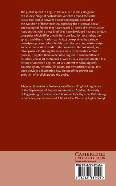 The global spread of English has resulted in the emergence of a diverse range of postcolonial varieties around the world. Postcolonial English provides a clear and original account of the evolution of these varieties, exploring the historical, social and ecological factors that have shaped all levels of their structure. It argues that while these Englishes have developed new and unique properties which differ greatly from one location to another, their spread and diversification can in fact be explained by a single underlying process, which builds upon the constant relationships and communication needs of the colonizers, the colonized, and other parties. Outlining the stages and characteristics of this process, it applies them in detail to English in sixteen different countries across all continents as well as, in a separate chapter, to a history of American English. Of key interest to sociolinguists, dialectologists, historical linguists and syntacticians alike, this book provides a fascinating new picture of the growth and evolution of English around the globe.
