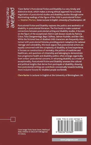 'Clare Barker's Exceptional Children is a very timely and distinctive book, which makes a strong ethical argument for a critical negotiation of postcolonial studies and disability studies through some illuminating readings of the figure of the child in postcolonial fiction.' - Stephen Morton, Senior Lecturer in English, University of Southampton.