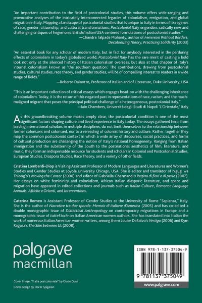 "An important contribution to the field of postcolonial studies, this volume offers wide-ranging and provocative analyses of the intricately interconnected legacies of colonialism, emigration, and global migration in Italy. Mapping a landscape of postcolonial studies that is unique to Italy in terms of its regimes of race, gender, citizenship and cultural transformations, Postcolonial Italy engenders radically new and challenging critiques of hegemonic British/Indian/USA centered formulations of postcolonial studies." - Chandra Talpade Mohanty, author of Feminism Without Borders, Decolonizing Theory, Practicing Solidarity (2003)
